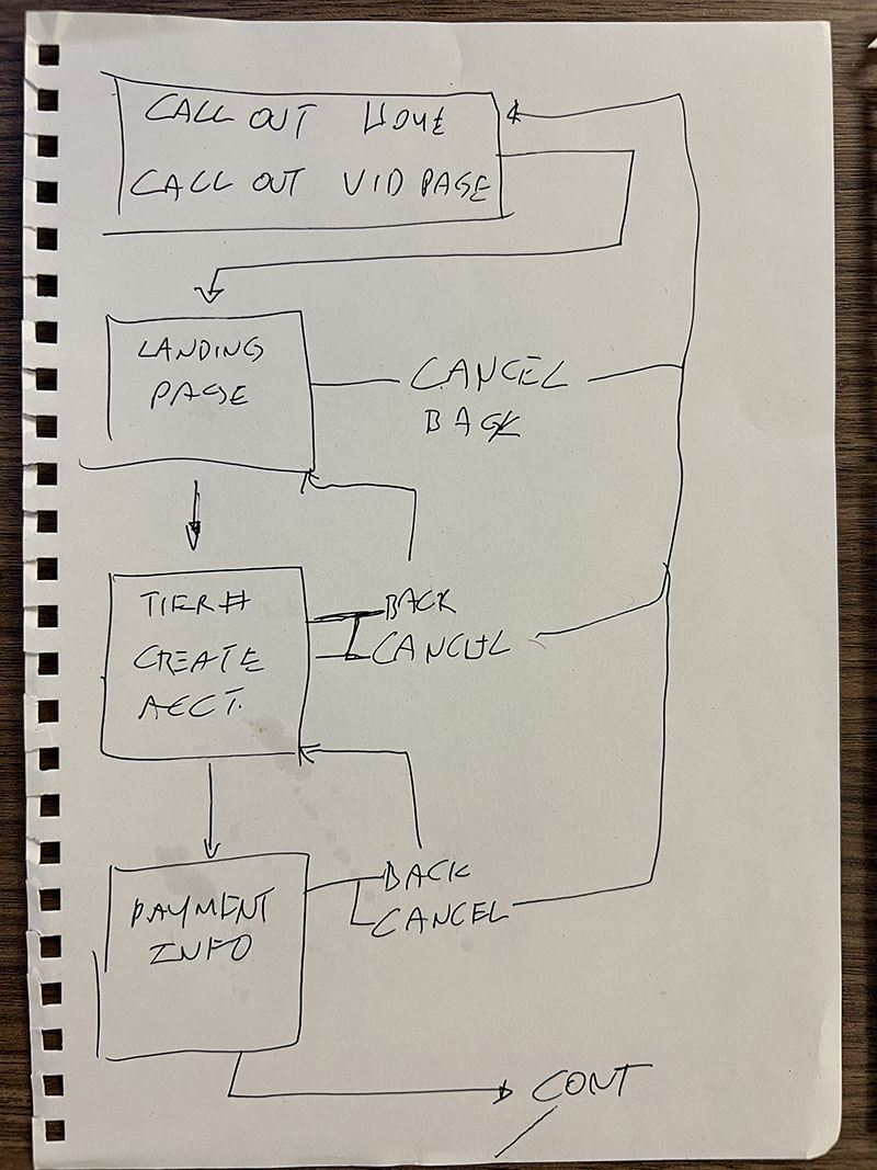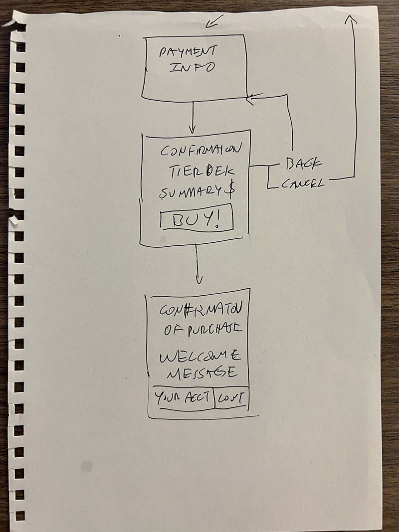 Starting on paper keeps the focus on structure before aesthetics. The flow maps every step and decision point — including where the experience branches for different membership tiers.
